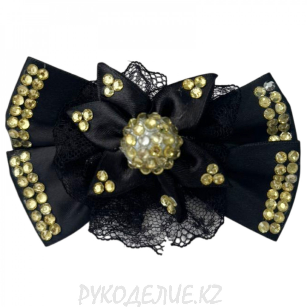 Брошь Бант с цветком LJ0537 SLV 04 - Чёрный (в наличии 20)