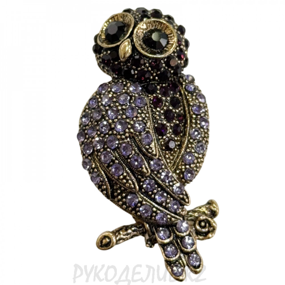 Брошь Сова 25*53мм 51 - Сиреневый (в наличии 3)