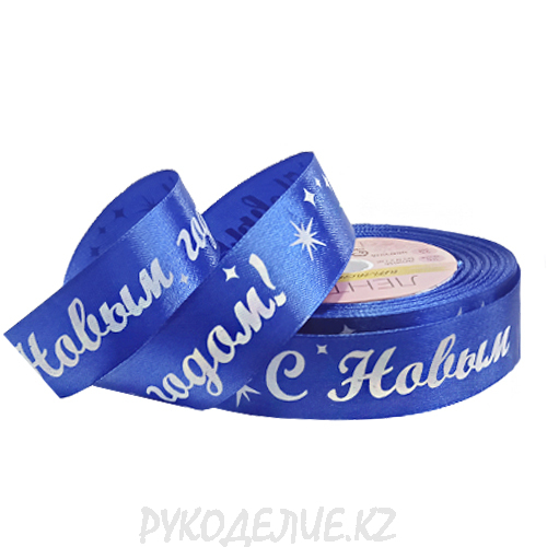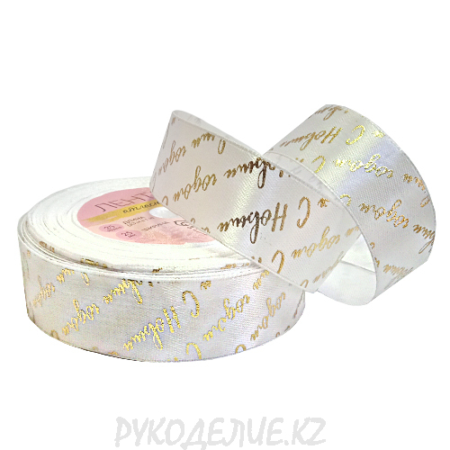 Лента новогодняя атласная "Удачи в новом году" 25мм
