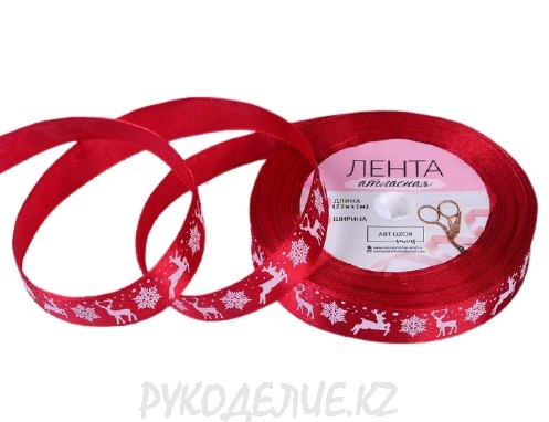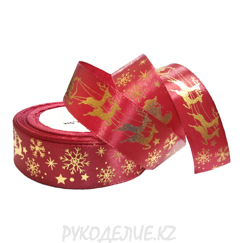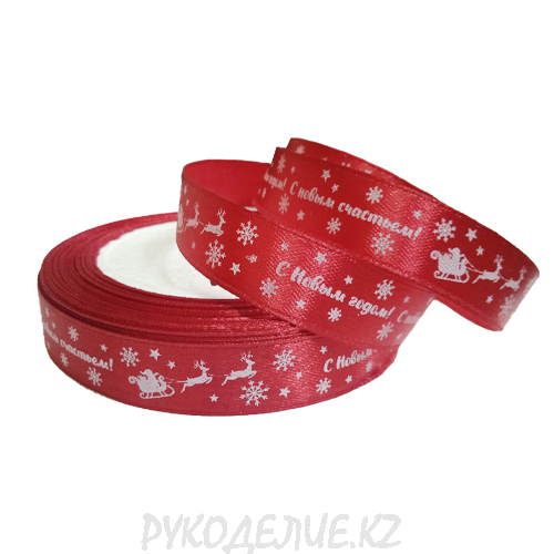 Лента новогодняя атласная "С Новым годом и Рождеством" 2см