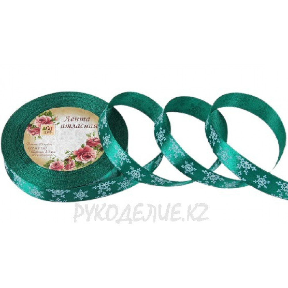 Высокое качество Лента новогодняя атласная 15мм снежинки в интернет-магазине Рукоделие кз.