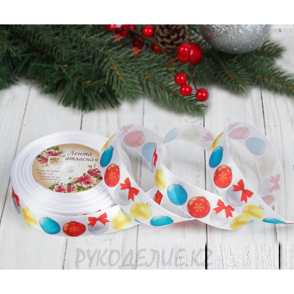 Высокое качество Лента новогодняя атласная Ёлочные шары 2,5см в интернет-магазине Рукоделие кз.