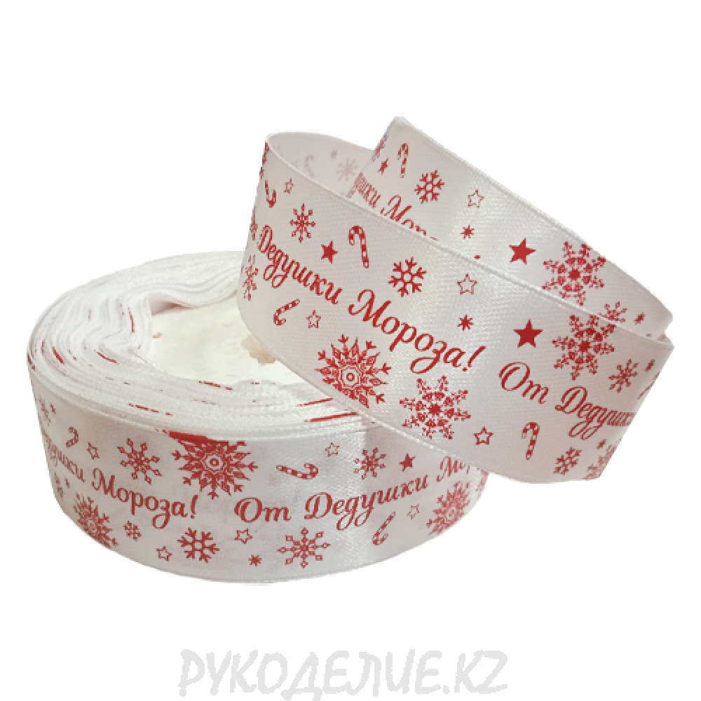 Высокое качество Лента новогодняя атласная "От дедушки мороза" 25мм в интернет-магазине Рукоделие кз.