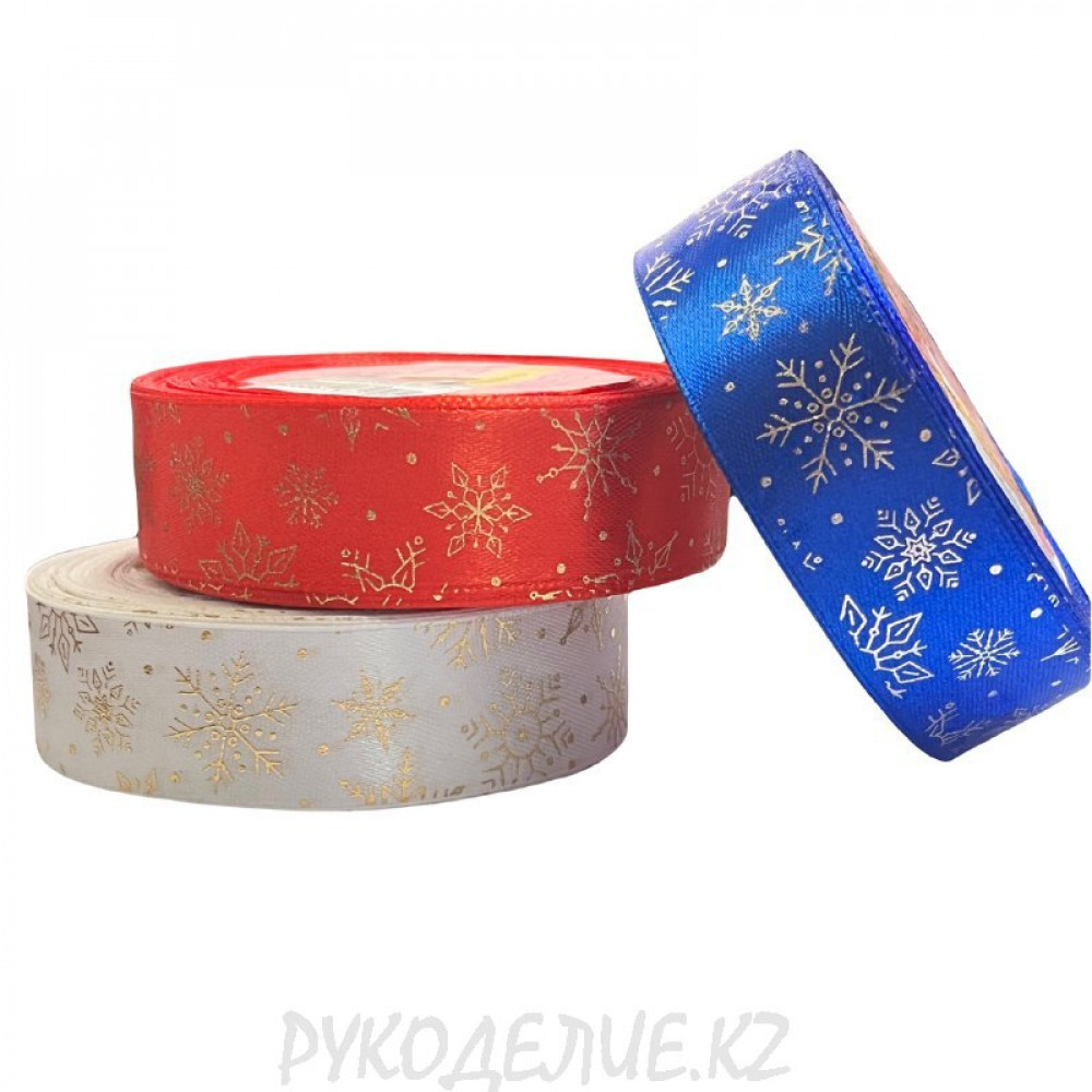 Высокое качество Лента новогодняя атласная "Снежинки" 25мм в интернет-магазине Рукоделие кз.