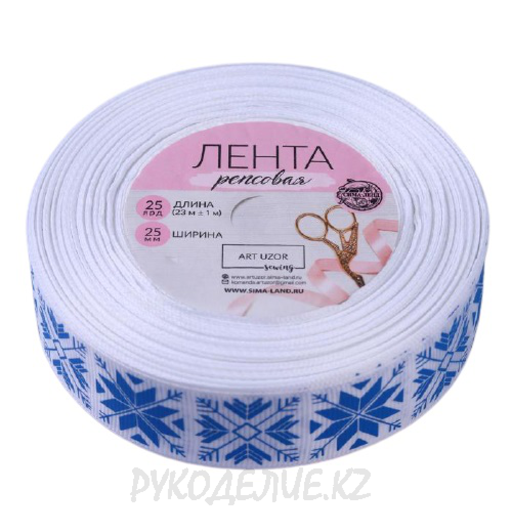 Высокое качество Лента новогодняя репсовая Снежинки 25мм в интернет-магазине Рукоделие кз.