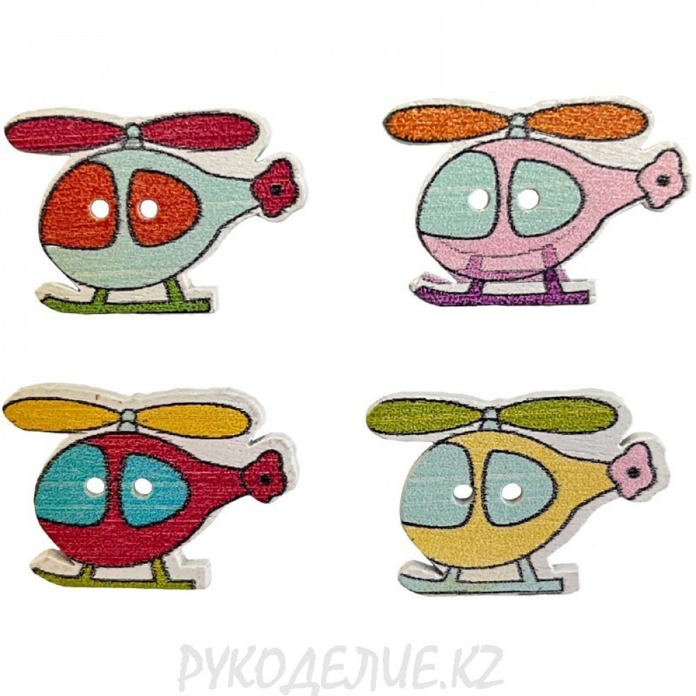 Пуговица декоративная дерево "Вертолётик" 2х2,8см, 1- Микс (в наличии 53)